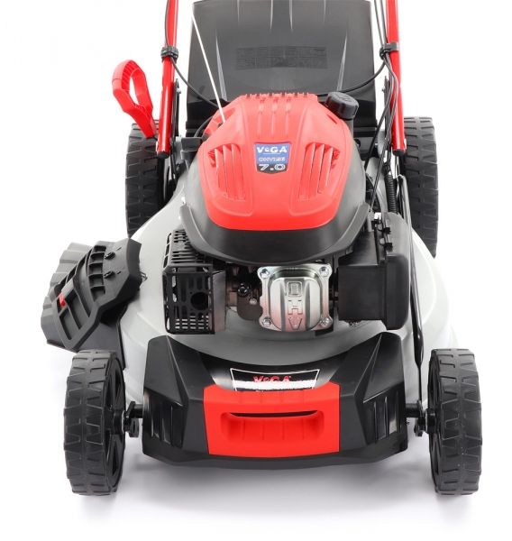 Motorová sekačka VeGA VeGA 545 SXH má ergonomické madlo s pogumovanou rukojetí a masivní ovládací panel s ovládacími prvky. Dále je tato sekačka vybavena sklopnou rukojetí pro snadné uskladnění a přepravu. Masivní žací nůž a velký koš s ukazatelem naplnění, spolu se zajímavou cenou, dělají z této motorové sekačky VeGA 545 SXH s pojezdem jedničku ve vyšší třídě sekaček s pojezdem.