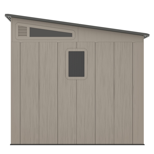 Tento moderní zahradní domek nabízí ideální kombinaci odolnosti, funkčnosti a elegantního vzhledu. Je vyroben z bezúdržbových dvouvrstvých HDPE panelů, které výborně odolávají povětrnostním vlivům a nevyžadují žádné speciální ošetřování. Tloušťka stěn 22 mm a zesílená střecha o tloušťce 36 mm zajišťují vysokou pevnost a dlouhou životnost celé konstrukce.