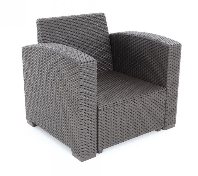 Nábytek má originální povrchovou strukturu napodobující přírodní ratan. Ideální pro pohodlné venkovní posezení na vaší zahradě či terase.