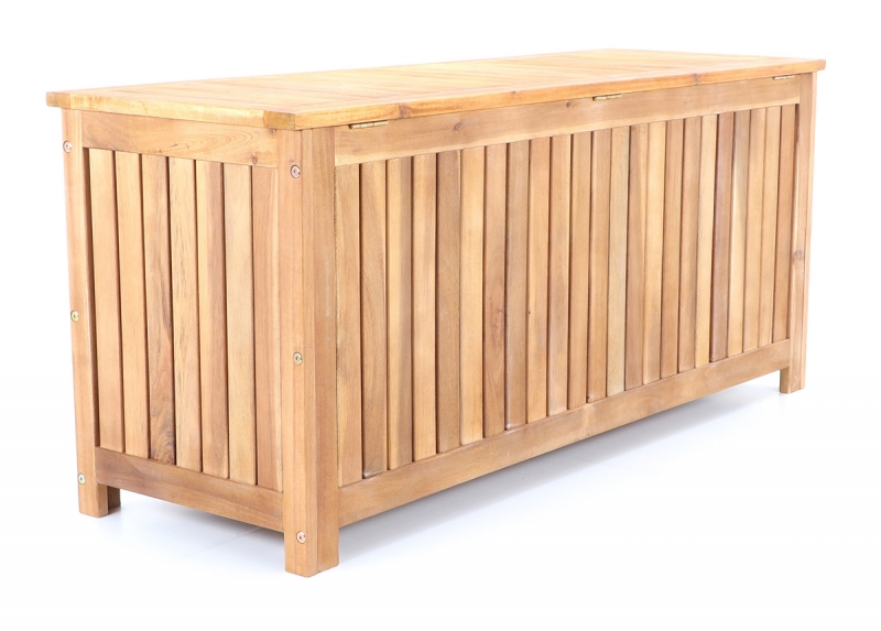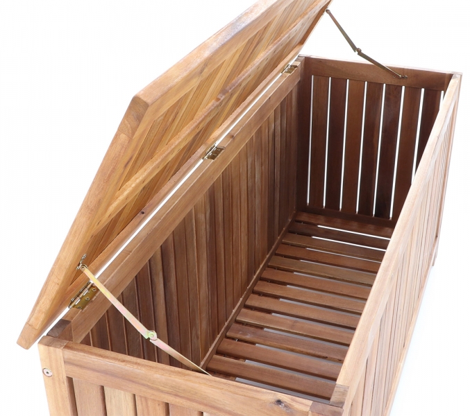 Box s úložním prostorem je vyrobena z tvrdého tropického dřeva Akácie. Box je vhodný pro mimosezónní uschování podsedáků a jiných čalouněných doplňků v pergolách.