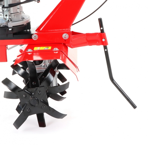 Tento kultivátor se pyšní robustní konstrukcí a odolnou kovovou převodovkou, což zajišťuje jeho dlouhou životnost i při intenzivním používání. Ergonomická rukojeť a přední madlo usnadňují manipulaci a poskytují vynikající ovladatelnost. Nastavitelná hloubka kultivace až do 26 cm umožňuje přizpůsobit stroj různým druhům půdy, zatímco speciálně tvarované nože zajišťují důkladné rozmělnění zeminy.